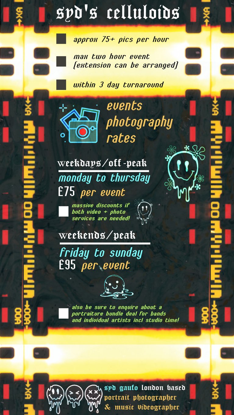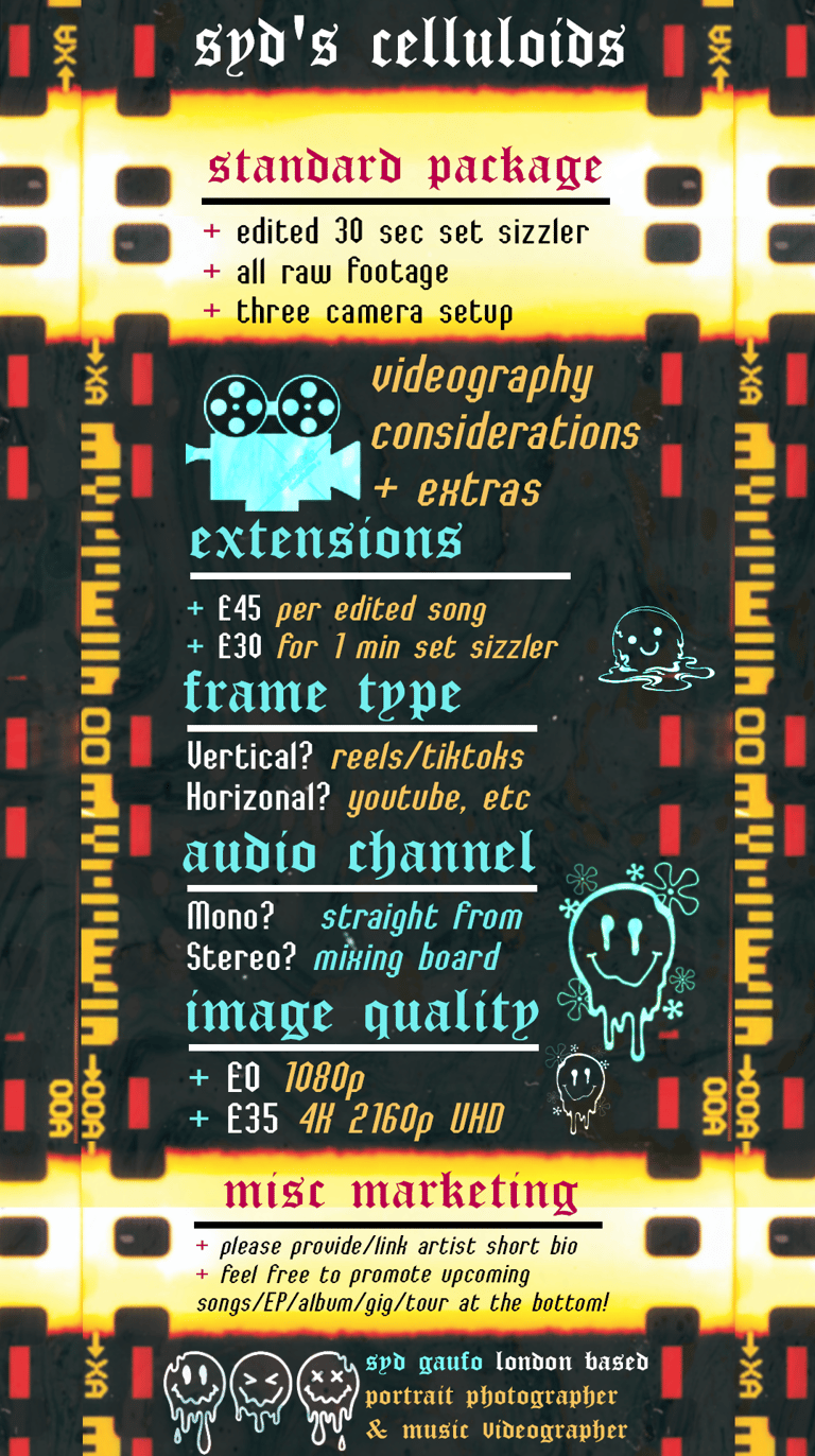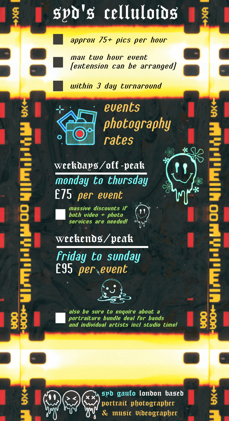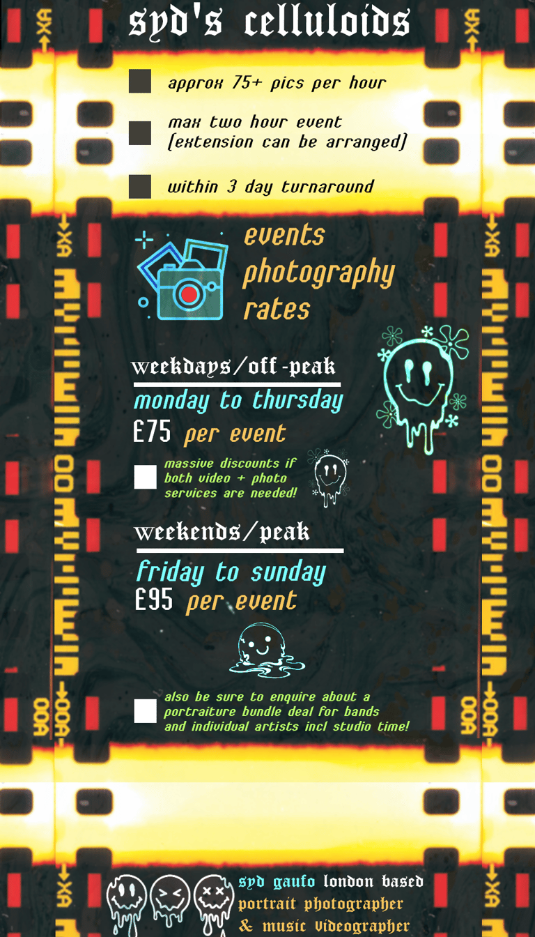hi, syd here :) - a freelance north london based photographer & videographer catering for gigs & concerts